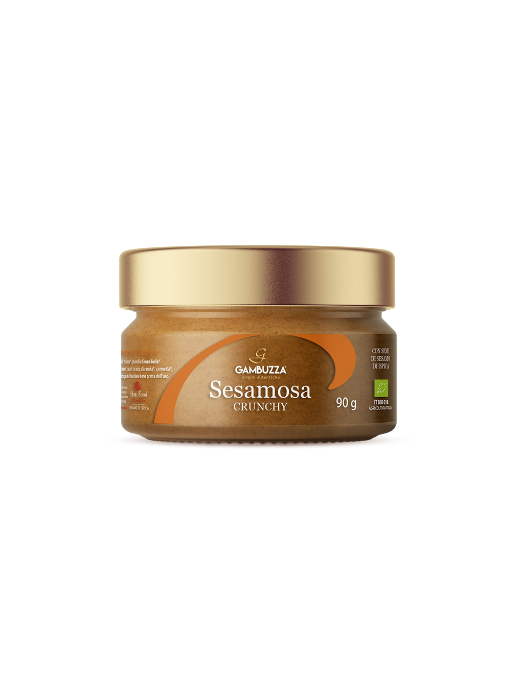 Energy and Flavour. Sesamosa Crunchy is a genuine and delicious spread, handcrafted with sesame of Ispica, hazelnuts, and sugar, enriched with pralined almond pieces. The perfect balance of creaminess and crunch, with a rich and enveloping flavour. Perfect for boosting your breakfast, enjoying a sweet and tasty break, or adding a special touch to your favourite desserts.